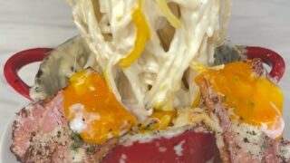 12月末迄販売延長🧀 極上牛レアカツボルケーノパスタ