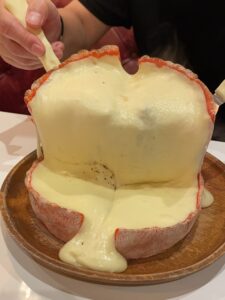 卵黄の下には、一枚麺とゆう帯上のパスタが折りたたんで入っており、麺を持ち上げるときのインパクトはすごいです!味はカルボナーラで、周りのローストされたサーロイン肉と絡めて食べる至極の幸せを是非ご堪能くださいませ。