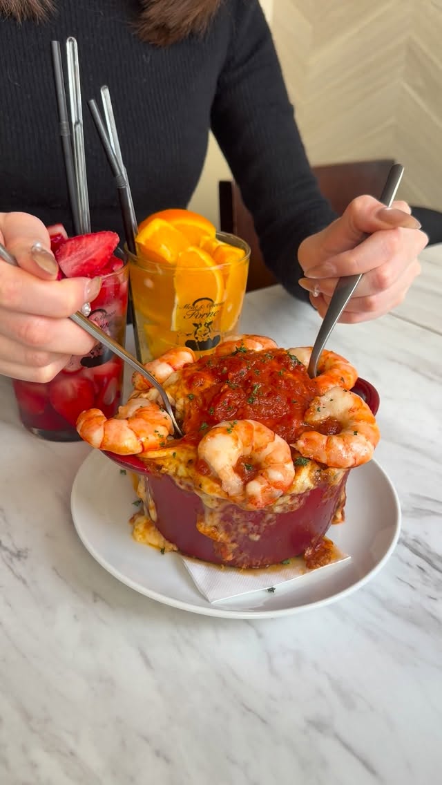 海老の旨みを凝縮させたアメリケーヌソースをパスタに絡ませ、とろとろチーズの上に大ぶりの海老を乗せたエビボルケーノパスタが登場!中にも刻んだ海老がたくさん入ってます!