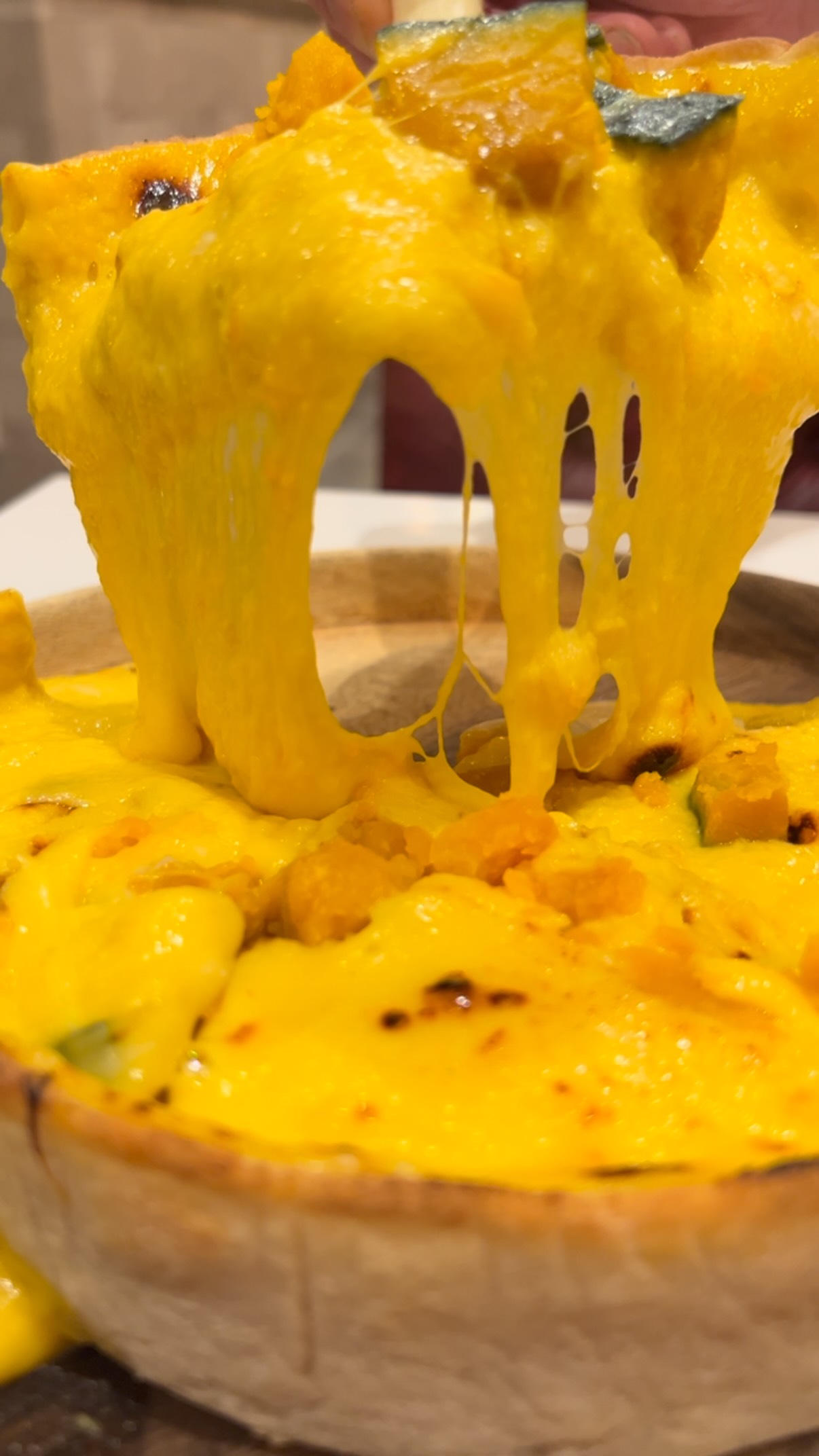 かぼちゃの甘みとチーズのハーモニー、更に上から蜂蜜をかけて濃厚にそして更に味わい深くお楽しみ頂けます🧀
