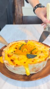 かぼちゃの甘みとチーズのハーモニー、更に上から蜂蜜をかけて濃厚にそして更に味わい深くお楽しみ頂けます🧀