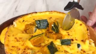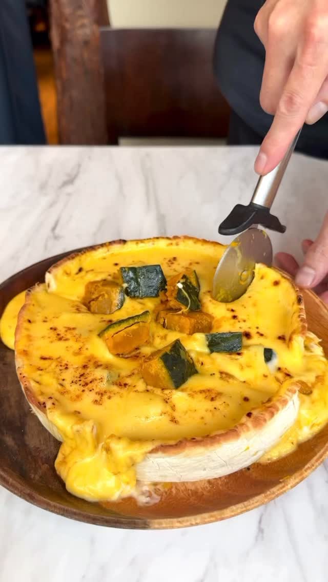 かぼちゃの甘みとチーズのハーモニー、更に上から蜂蜜をかけて濃厚にそして更に味わい深くお楽しみ頂けます🧀