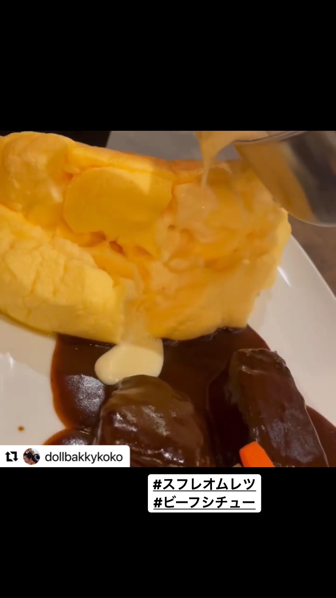 スフレオムレツの牛バラの赤ワイン煮込みソースにチーズかけ〜🧀
