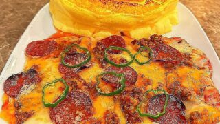 プレスリリース2025年10月22日ピザのせ!?スフレオムレツがやばすぎる サラミ・チーズ・ピザソースが、