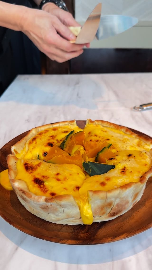 かぼちゃの甘みとチーズのハーモニー、更に上から蜂蜜をかけて濃厚にそして更に味わい深くお楽しみ頂けます🧀