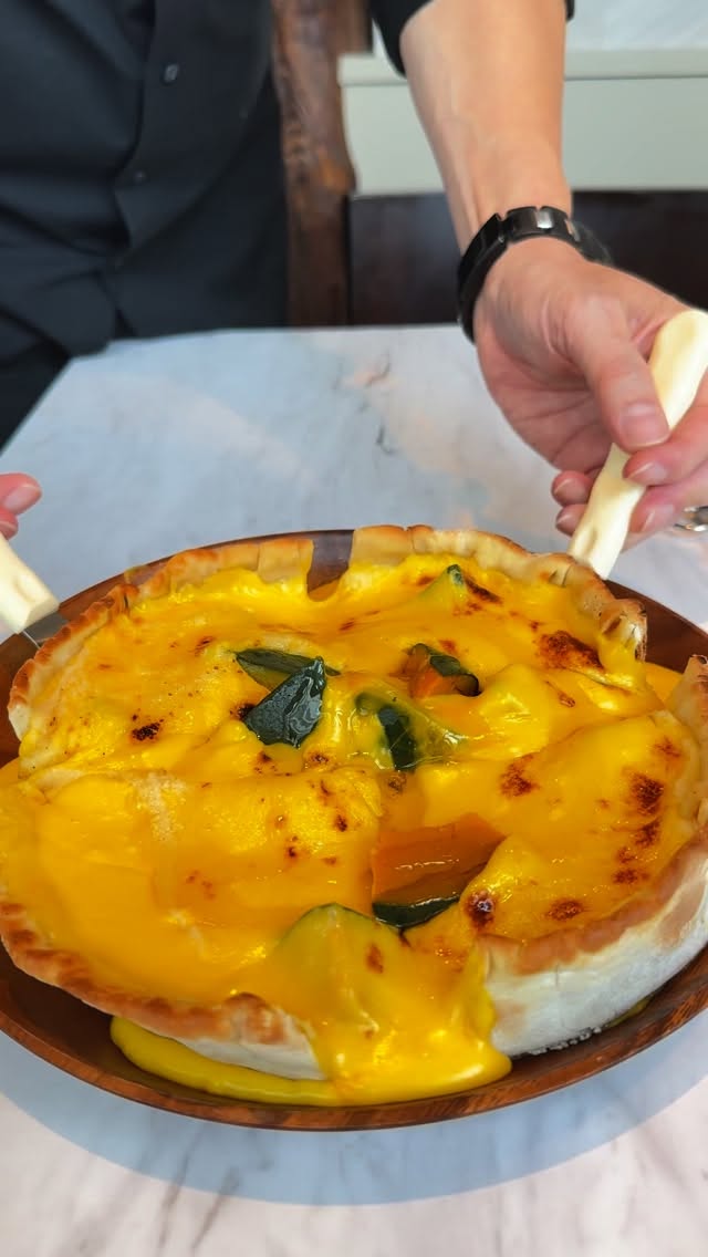 かぼちゃの甘みとチーズのハーモニー、更に上から蜂蜜をかけて濃厚にそして更に味わい深くお楽しみ頂けます🧀