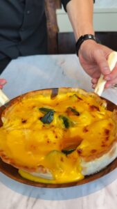 かぼちゃの甘みとチーズのハーモニー、更に上から蜂蜜をかけて濃厚にそして更に味わい深くお楽しみ頂けます🧀