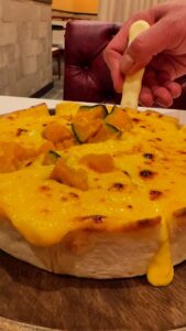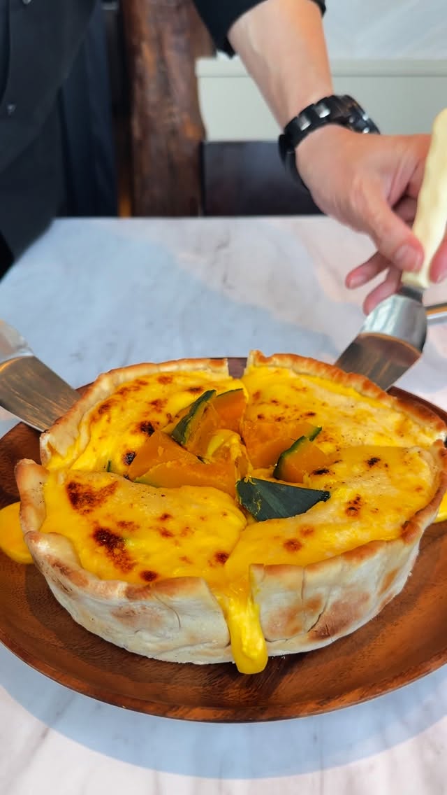 かぼちゃの甘みとチーズのハーモニー、更に上から蜂蜜をかけて濃厚にそして更に味わい深くお楽しみ頂けます🧀