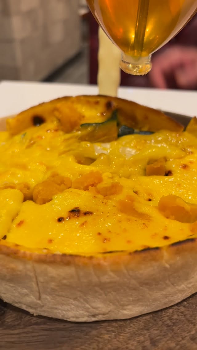 かぼちゃの甘みとチーズのハーモニー、更に上から蜂蜜をかけて濃厚にそして更に味わい深くお楽しみ頂けます🧀
