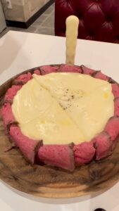 原価率70%をこえる、北海道産サーロイン肉のローストビーフをシカゴピザの周りにのせます。