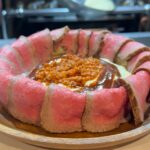 バナナサンド、夜会で紹介された、爆発的!大人気商品!サーロイン肉シカゴピザ🧀🧀 原価率70%をこえる、北海道産サーロイン肉のローストビーフをシカゴピザの周りにのせます。