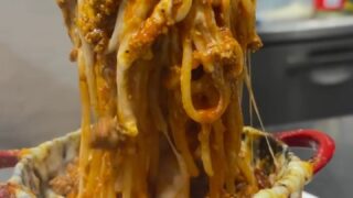 とろ〜りチーズが止まらない🧀️ 熱々ジューシーなミートソースと一緒に、