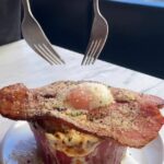 ボルケーノパスタ ボノネーゼ🧀🧀 チーズの下には、粗挽き肉がゴロゴロ入ったボロネーゼが入っており、太麺にミートソースとチーズが絡んで良い香りが漂います。