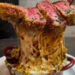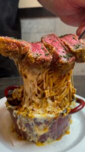 #牛レアカツボルケーノパスタ