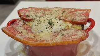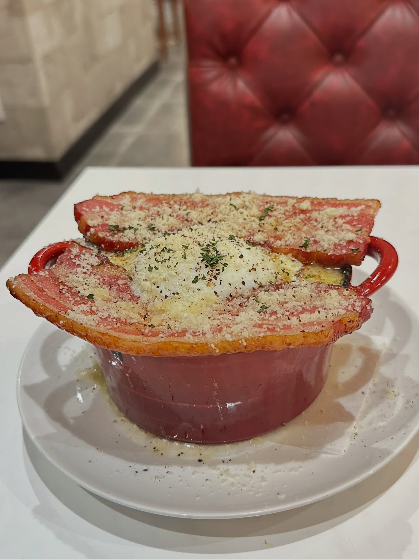 \チーズもソースも溢れ出す/ とろ〜り卵黄×濃厚チーズ×極厚ベーコンの最強トリオ!