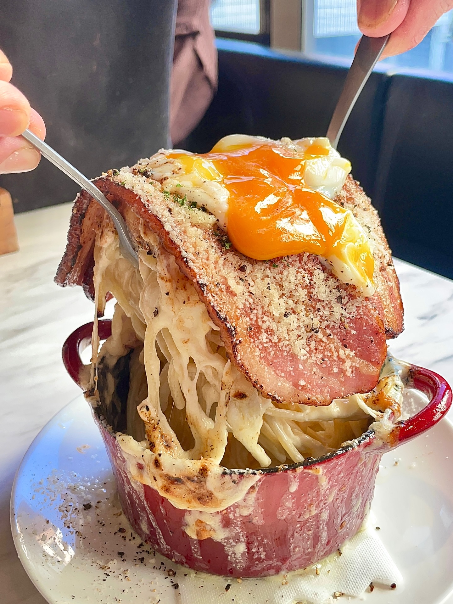 “カルボナーラボルケーノパスタ”がボリューム満点すぎる🧀