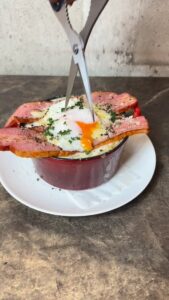 \チーズもソースも溢れ出す/ とろ〜り卵黄×濃厚チーズ×極厚ベーコンの最強トリオ!