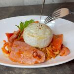 贅沢にカマンベールを丸々1つのっています!カットするととろーりチーズがたまらない🧀パスタと絡めて食べると最高です!