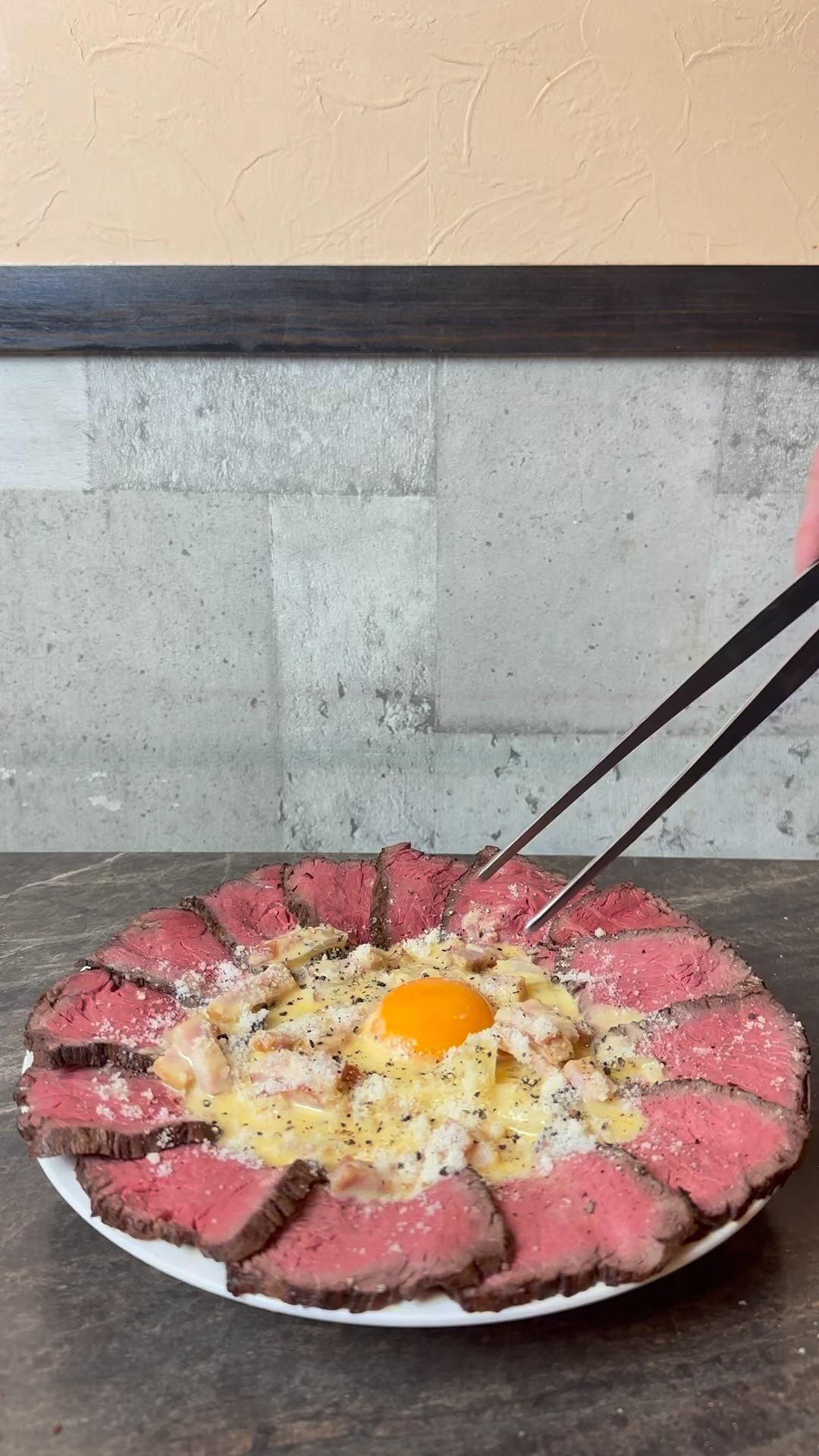 Hokkaido sirloin meat bonara with a single noodle🧀