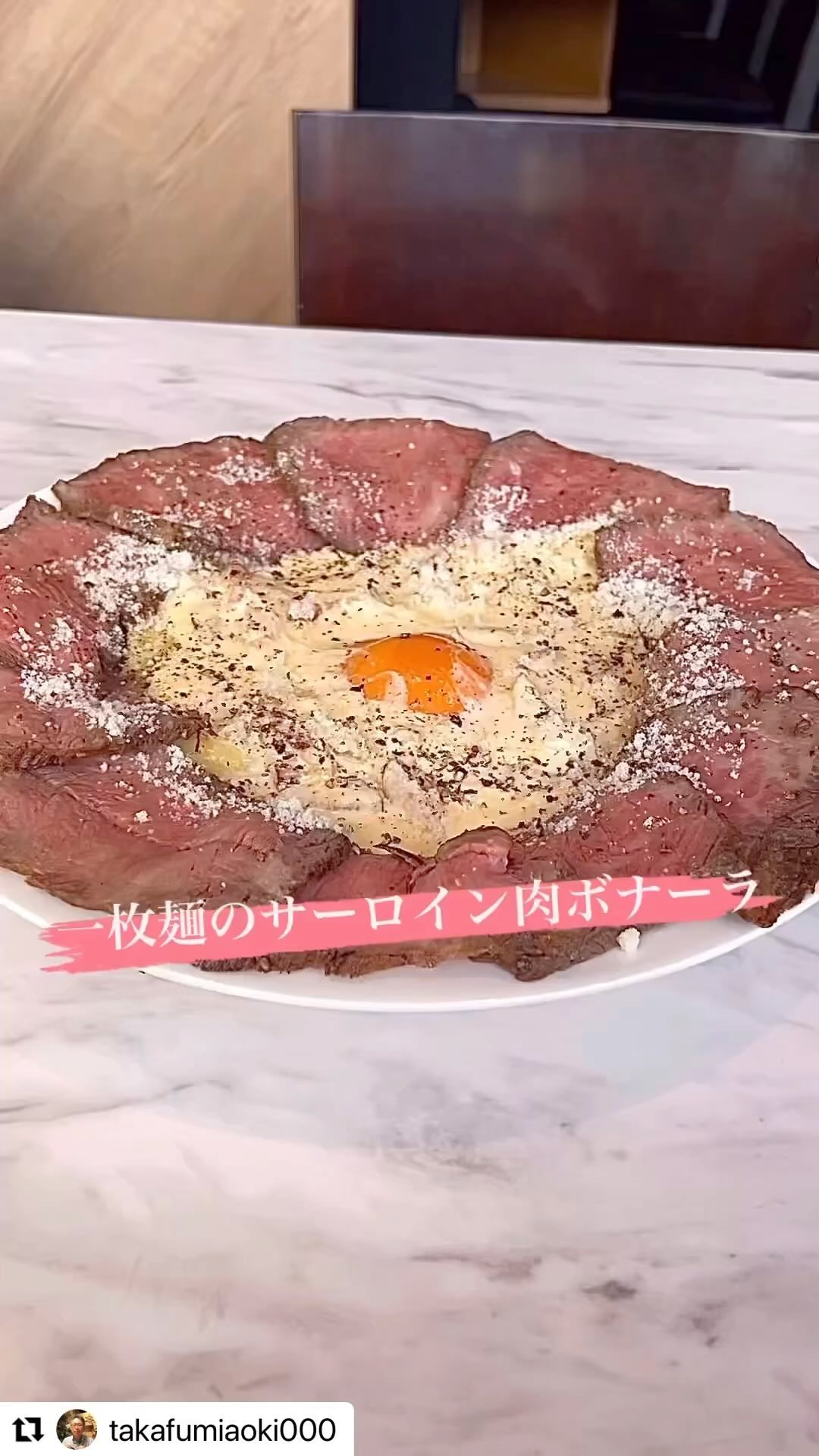 #一枚麺のサーロイン肉ボナーラ